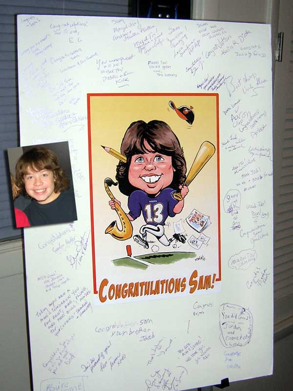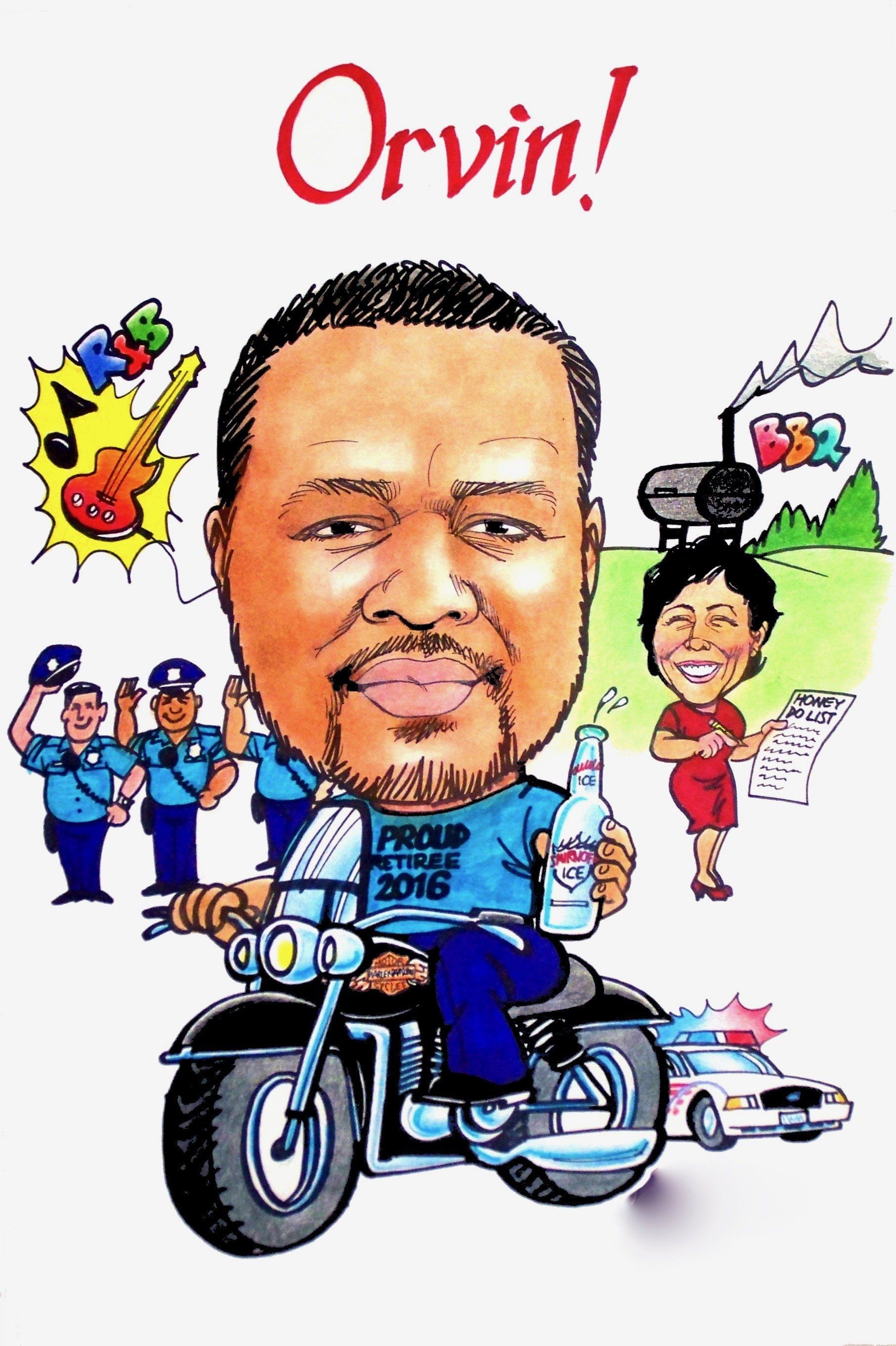 Need a unique GIFT IDEA or a SIGN-IN BOARD for someone special? How about giving a personalized caricature ready to frame and hang on the wall for years to come. We just need 2-3 great photos and a good description of their character, hobbies and interests.