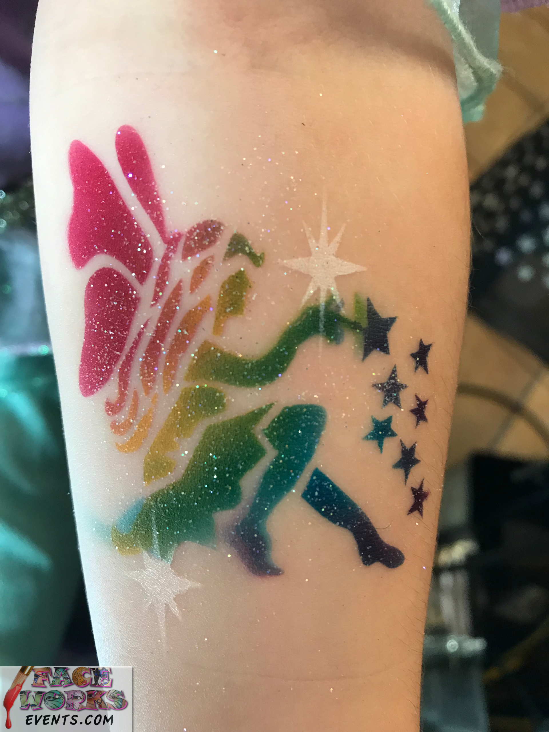 Turn your event into a masterpiece of fun with airbrush tattoo designs that spark joy and ignite imaginations! Whether you're hosting a cozy gathering or an epic celebration, Face Works Events is your go-to for transforming moments into unforgettable memories. From bold designs to intricate artistry, we’ll sprinkle magic all over your event. Ready to make jaws drop and guests grin? Contact us today for the ultimate airbrush body art experience in Maryland, Pennsylvania, Virginia, and Washington, D.C. Let’s turn ordinary into extraordinary!